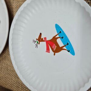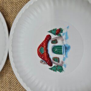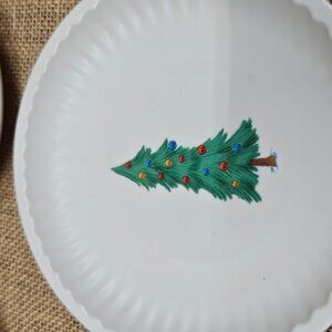 These super fun festive Christmas plates are for desserts and are made of melamine for easy snacking and clean up. They each have a different diesign and measurn 6 inches in diameter. They weigh 1 lb 1 oz together. Add these to your holiday serving ware today. Each plate measures 6 inch.