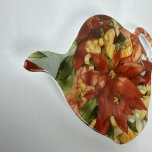 Melamine Poinsettia Teabag Holder teapot shaped Made in Italy Christmas Holiday