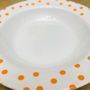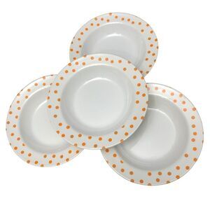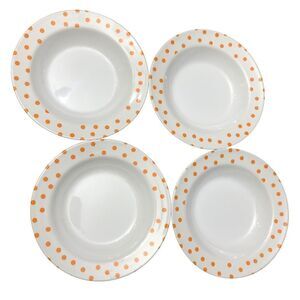 Melamine White & Orange Dots Deep Round Dish Plates (Set of 4)