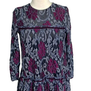 Melange Girl 14 gray + purple lace long sleeve dress with velvet strips