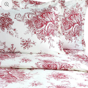 Melange Home Red Toile Embroidered vintage French Inspired Cotton Pillow Sham