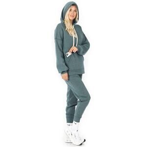 Melange Velboa hoodie & jogger Pants set (Hunter Green)- Small