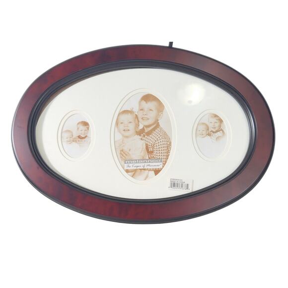 Melannco 17" Oval Wooden Triple Picture Frame Wall Hanging