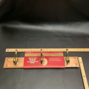 Melard Old Forge Triple Hook Solid Oak Plaque Antique Brass Finish Easy Mount