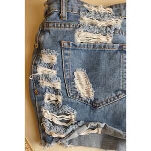 Mele Pere Booty Jean Shorts Woman M - Cut Offs Grunge Destroyed Distressed Denim