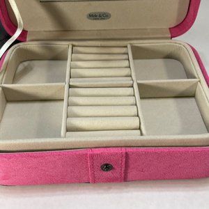 Mele and Co Giana Flocked Travel Jewelry Box Case Pink Multi Sueded Fabric - NEW