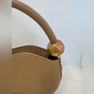 Chic Melie Bianco Jennie Tan Purse. Smooth tan finish. Unique handle design with Bead detail.