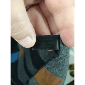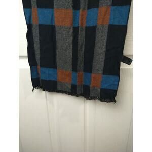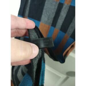 Melifluos men's colorblock scarf in good condition. Soft reversible black grey blue brown small end fringe