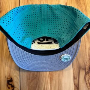 PERFORMANCE SNAPBACK HAT: Exterior crown has hydrophobic crown panels, laser-perforated side & rear panels for breathability, and custom soft touch snapback closure. Visor has hydrophobic exterior, water capable core, and signature under visor seal