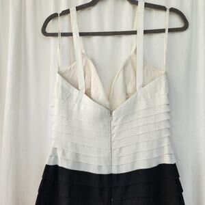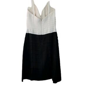 Melina Eng black and white mini dress Size 4 100% Silk Vintage Plisse Bodycon