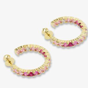Ombré all day! You will LOVE the ombré pink sapphire stones! In a 1” size, the Heiress Ombré Hoops, are the perfect blend of playful and elegant. The stunning gradient of simulated pink sapphires gives a dazzling ombré effect that adds a vibrant touch to any outfit. Perfect for everything from a casual brunch to a night out on the town, the Heiress Ombré Hoops are the ultimate accessory to light up your look.