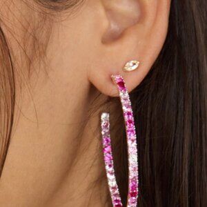 Melinda Maria Heiress Ombre Hoops 2 inch in Silver and Pink Sapphire Ombre