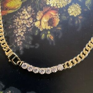 Melinda Maria Julian Cuban Chain 18" Necklace Simulated Diamonds 18K Gold Plated