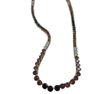 ***LIMITED EDITION*** This exquisite Melinda Maria necklace showcases a harmonious blend of gold and brown hues, crafted with precision in a delicate tennis design. The diamondettes are arranged in a subtle ombré pattern, creating a sophisticated and elegant look. Perfect for adding a touch of elegance to any outfit, this necklace is a timeless piece in the jewelry collection. 16" Hard to find