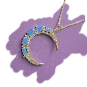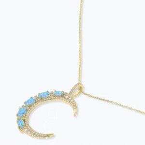 She shines, she’s unforgettable, and SHE’S AN ICON. A crescent moon formed from majorly mood-boosting prong-set graduated simulated blue opal and set off by a row of pavé, the She's an Icon Blue Moon Necklace is the perfect way to glow like the moon, day or night.