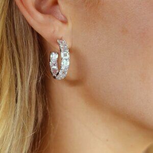 There's no doubt heads will turn when you waltz by wearing these stunners! Melinda Maria designed these silver 1-inch Queen's Hoops with 10 sparkling simulated diamonds on each one, cleverly positioned to best catch the light no matter the angle! You'll receive the pair shown here and MM's famous lavender pouch.