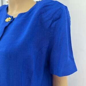 Melissa (14) Womens American VINTAGE 80's Blue Button Up Sheath Midi Dress
