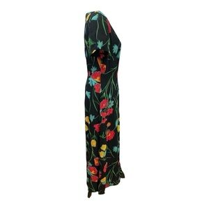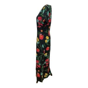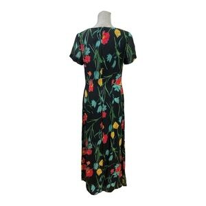 Melissa 90's black maxi dress with red, yellow & blue tulips flowers size 6.