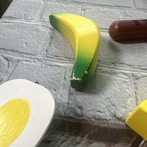 All in good condition, the banana has a little bit of paint chipping on the ends. This is pictured