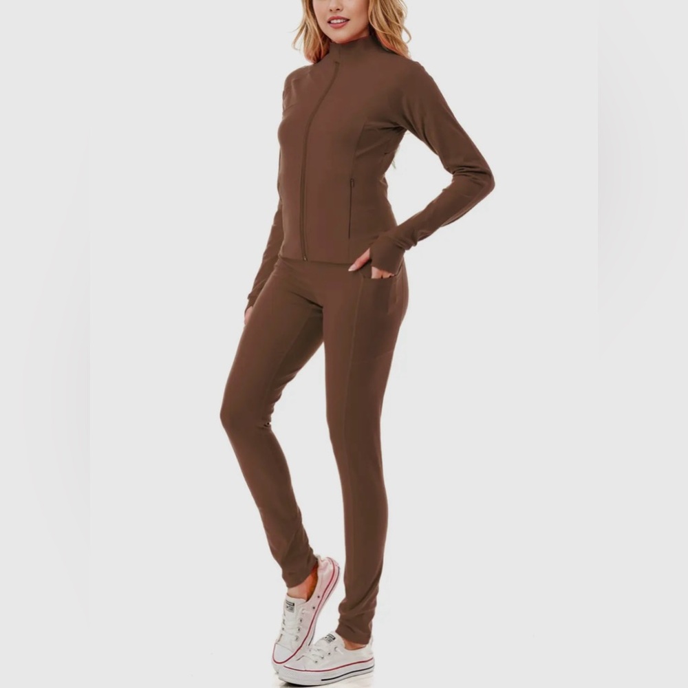 Introducing the Melissa Baddie Set, a versatile and stylish activewear set perfect for the modern woman on-the-go. With a full zipper front and side zipper pockets, you can easily adjust for comfort and convenience. The sleeve with thumb hole adds a touch of functionality, while the high waist skinny leggings with side pockets offer ample storage. Crafted from a blend of 80% polyester and 20% Spandex, this set promises comfort and durability for all your fitness activities.