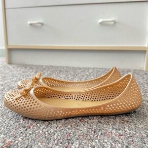 Elegant flats with a perforated design. Features a delicate bow on the front. Comfortable and stylish for everyday wear.