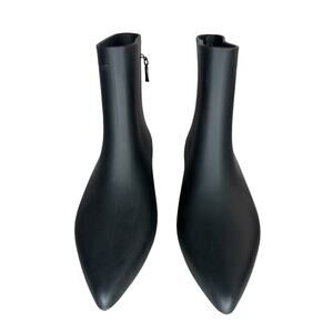 Sleek black ankle boots. Pointed toe design. Low heel for comfort.