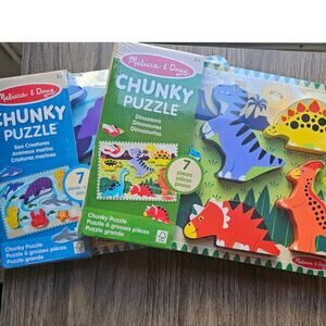 Melissa & Doug 2 pc Bundle Chunky Wood Puzzles 1 Dinosaurs 1 Sea Creatures NWT