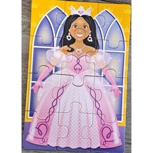 Wooden box contains four 12-piece puzzle, a princess, a ballerina, a mermaid and a fairy. Pieces have a shape code on the back of each piece, so easy to separate, if the pieces become mixed.