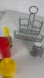 Set includes: Ketchup bottle, Mustard bottle, Hot Sauce bottle, Salt & Pepper shakers, and carrying caddy.