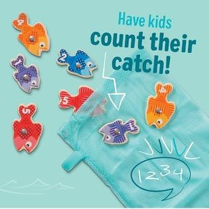 Melissa & Doug Fishing Game. The fishing poles really work with the magnetic fish. Ages 3-5. Hardly used maybe once, in brand new condition with all the pieces and storage mesh bag!