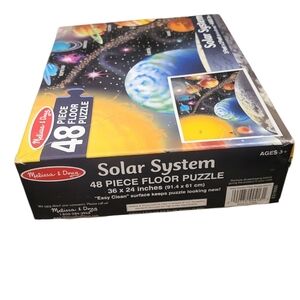 Explore outer space with this colorful and educational Melissa & Doug Solar System Floor Puzzle! Featuring 48 extra-thick pieces, this puzzle measures 3 feet by 2 feet when assembled and is perfect for curious young minds. Designed for children ages 3 and up, it promotes hand-eye coordination, problem-solving skills, and early interest in astronomy.