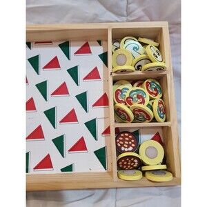 Melissa and Doug Pizza Party and pots and pans set. Pizza party tray has some stress cracks, otherwise normal wear from use. 44 toppings pieces.
