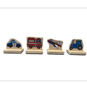 Unleash creativity with this vibrant wooden vehicle stamp set. Featuring colorful designs, it's perfect for imaginative play and art projects.