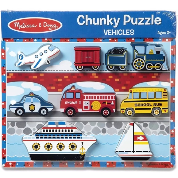 Melissa & Doug Vehicles Wooden Chunky Puzzle - Plane, Train, Cars, and Boats