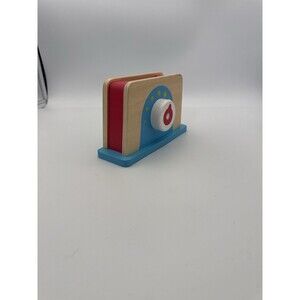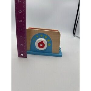 Perfect for pretend kitchen play! Includes a bright and colorful wooden toaster with turnable dial, working lever, and slots for play toast (not included). Sturdy wood construction with fun, retro-style graphics.