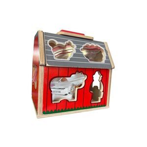 Melissa & Doug Wooden Take-Along Sorting Barn Toy 10 pc Flip-Up Roof & Handle
