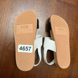 Melissa Girls Black White Flat Cosmic Sandals Size 2 Jelly Ankle Strap Buckle