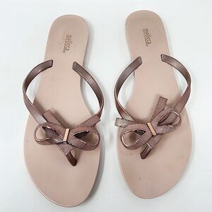 Melissa Harmonic Chrome II Flip Flop Metallic Pink Rose Bow, Jelly Sole US 9 EUC