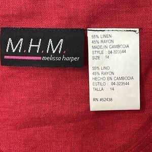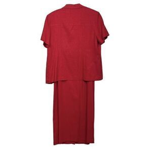 Melissa Harper Vintage Linen Blend Maxi Dress Set Women Size 14 Red Short Sleeve