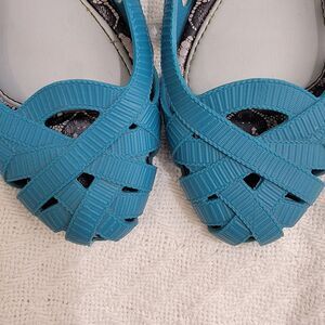 Melissa + Jason Wu Jean Jelly Woven Flat Blue Turquoise Size EU 39 US 8 EUC