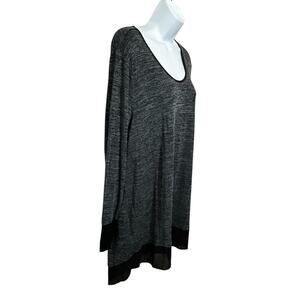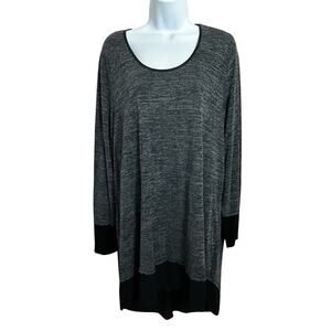 Melissa McCarthy Seven7 Black Gray Blouse Sz 1X Tunic Top Long Fit High Low Hem