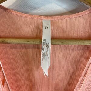 Melissa McCarthy Seven7 Blouse Top Size 1X Sleeveless V-Neck Satin Pink/ Peach