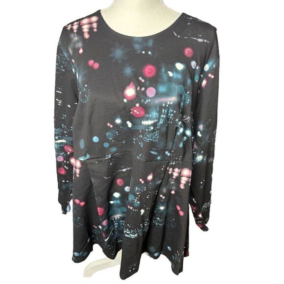 Melissa McCarthy Seven7 Tunic Top Womens Size 2X Black City Lights Zip Up NWT!