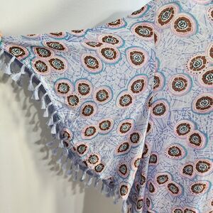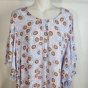 Melissa McCarthy Seven7 Womens Blouse Size 1X Cold Shoulder Flutter Tassel Trim