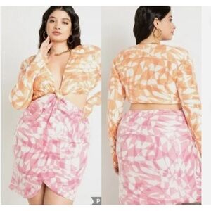 Melissa Mercedes x Eloquii Sequin Dress 24 Pink Orange Open Back Long Sleeves