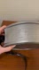 Unique circular crossbody bag by Melissa. Metallic gray finish with adjustable black strap. Fun to add a touch to your outfit, light, and comfortable.