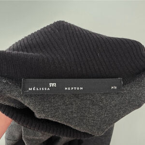 This chic gray mini dress by Melissa Nepton features an asymmetrical ruffle design that adds a touch of flair to its A-line silhouette. The sleeveless style with a mock neck is perfect for cocktail parties or a night out, offering a sophisticated yet playful look.