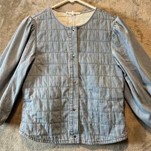 Melissa Nepton Kitty Quilted Denim Jacket In Bleached Denim Size XS Blue