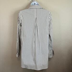 Melissa Nepton Nea Tunic Top Women's XS Gray Stripe Button Down Roll Tab Sleeve