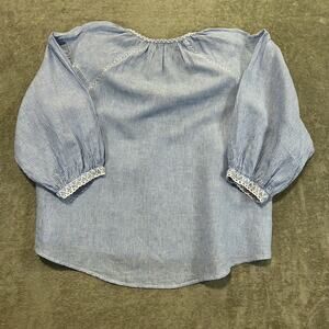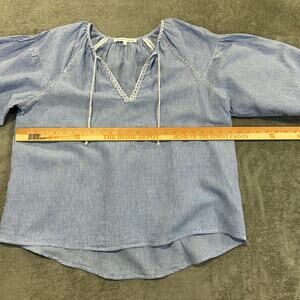Melissa Nepton Olivia Blue & White Striped Peasant Top XL Crochet Boho Linen